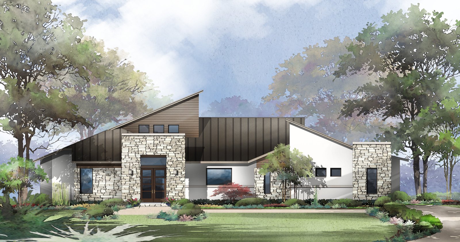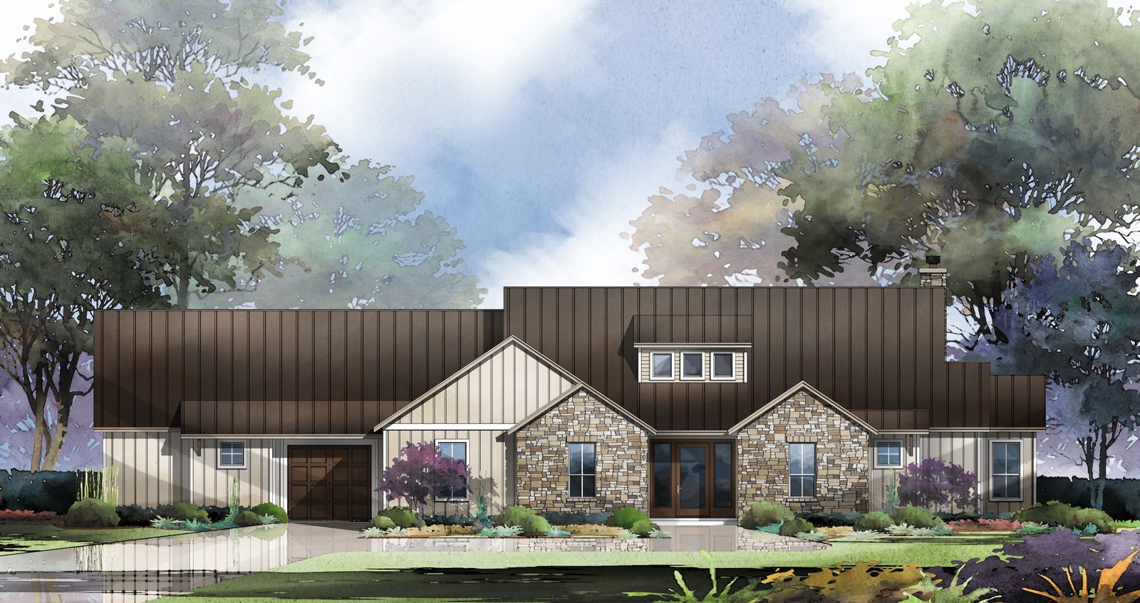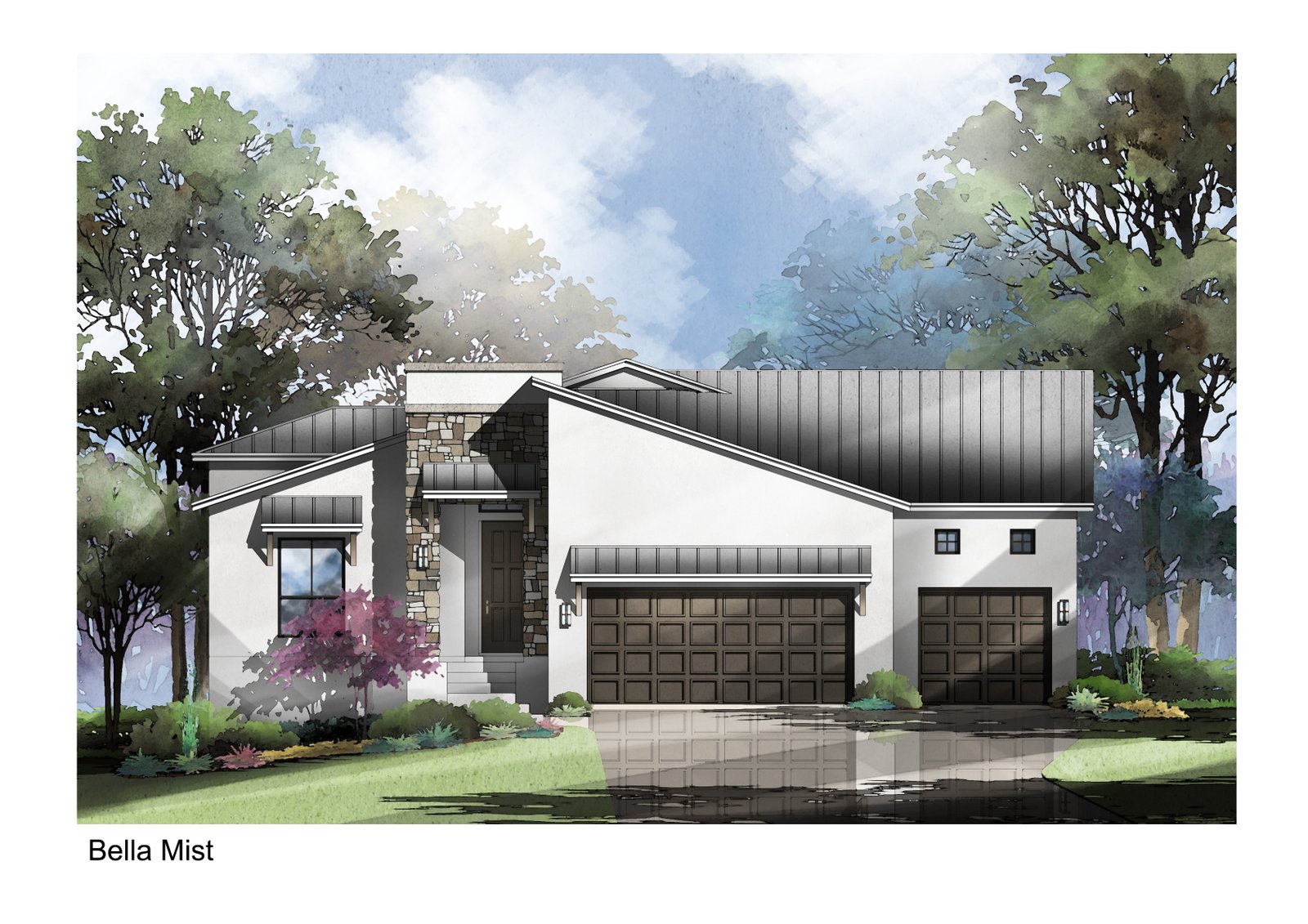 Walking in through the stone-façade entryway you may be reminded of a mountain home which is, in fact, the inspiration behind this design, named after one of America’s most famous mountain peaks. Through the entry hall, you can access three spacious bedrooms; each featuring walk-in closets, or continue on into the open concept living, dining, and kitchen areas with views to a large covered patio. |
